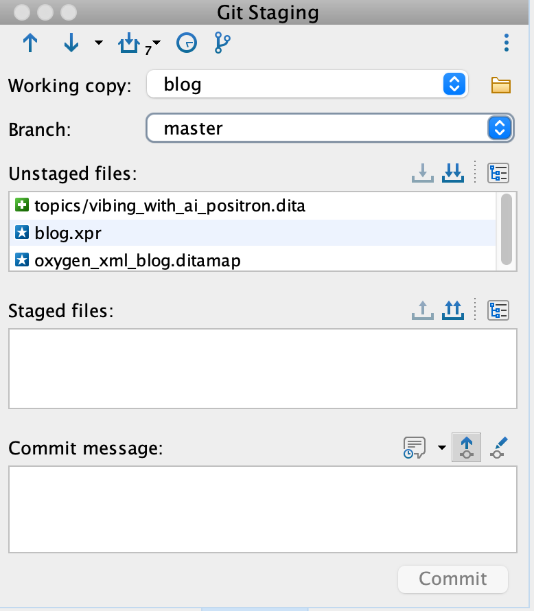 Oxygen XML Editor's free Git client add-on is a great tool which gives technical documentation writers just about every feature needed to work with Git projects: support to pull, make changes, preview them, push, a useful History side view, switch branches, and stash changes.
